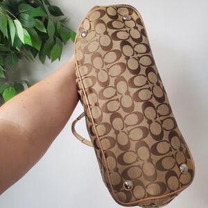 COACH F28501 Signature PINK Drawstring Satchel Classic Brown Tote Purse USED