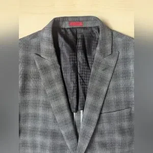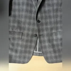 John Varvatos 42R Charcoal Checkered Plaid Blazer Sport Coat Jacket Herringbone