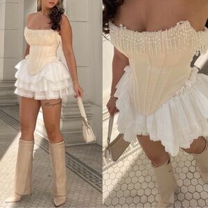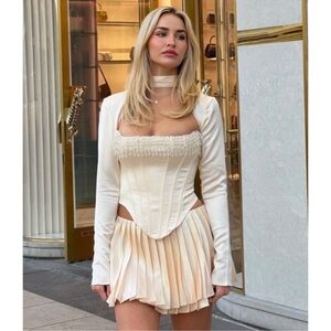 The most glamorous top you'll wear this season, our 'Aubrie' corset is ultra feminine and perfect for parties. We love how it can be dressed up with a midi skirt or dressed down with jeans. Wear yours with our 'Emira' mini skirt and dainty mules.