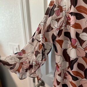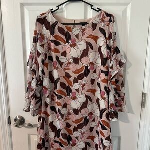Ann Taylor Pink and Brown Floral Long Sleeve Dress Size 10