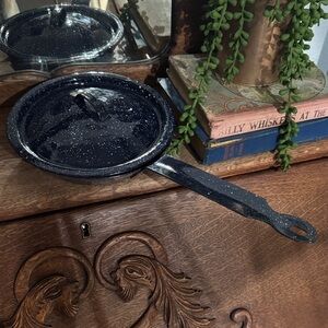VTG Enamelware/graniteware 6” skillet pan with lid
