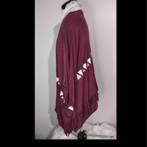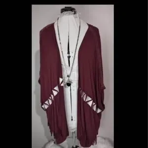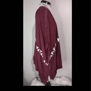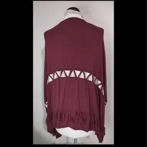 Super Cute L/XL POL Short Sleeve Cardigan Blouse burgundy white frill C3394