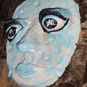 Hand-made and hand-painted, it is a moon face insence holder and the mouth is where the insence stick is to be placed, it is about the size of a tea saucer.