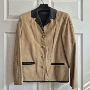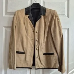 VTG Buckskin Blazer Jacket Genuine Suede Leather Womens Sz 8 Black Trim