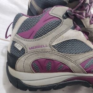 Merrell Castle Rock Gray Purple Hiking Boots Womens Size 8.5 Waterproof Lace Up
