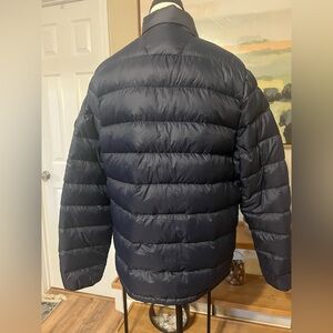 abercrombie & fitch, a&f puffer, down jacket, packable puffer, ultralight jacket, navy puffer, winter coat, men’s medium, travel jacket, camping, hiking layer, commuter jacket, cold weather, insulated jacket