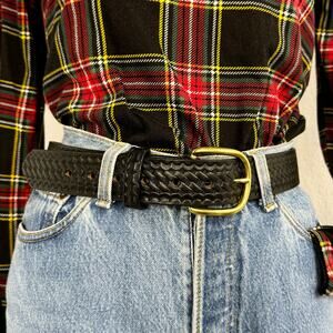 Boston Leather Classic Black Leather Belt Removable Buckle Size 34, Good Condition