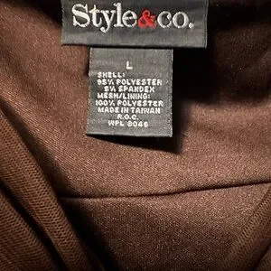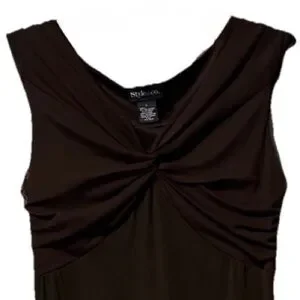 Style & Co Brown Ruched Twist Front Midi Dress | Stretchy Sheer Layered L