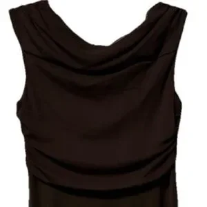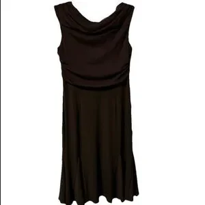 flattering, & easy to style 🤎 this beautiful vintage Style & Co midi dress features a twisted/ruched bodice in both the front AND the back for a beautifully shaped, waist-defining fit. the stretch knit fabric drapes comfortably while keeping a polished silhouette — perfect for work or day-to-night styling.