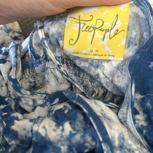 Elastic waist with drawstring cutout. An elasticized waist brings boho-cool to this top, finessed with soft draping and a tie-dye floral pattern. Machine wash cold with like colors