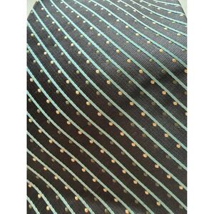 Claiborne Men's Necktie Silk Black Teal Gold Striped Polka Dot Handmade
