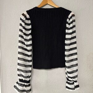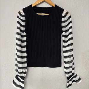 ANTHROPOLOGIE Maeve Black and White Cable Knit Contrast Sweater Size XS