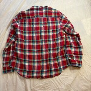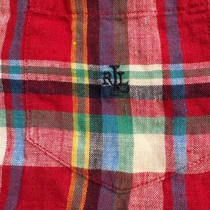 Lauren Ralph Lauren Petite Plaid Linen Button Down Shirt Red Green Blue Size M