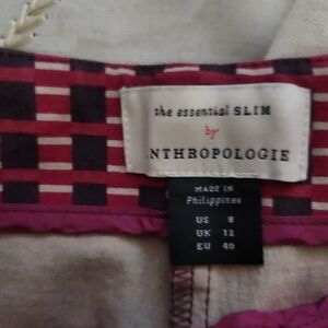 #anthropologie #euc #geometricprint #size8 #pants #cropped #pink #black #white #contemporary #designer #statement #trendy