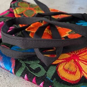 What beautiful work! This handmade statement bag can hold all your essentials. It screams vacation holiday or happy boho. In excellent condition. Please see measurements in the photos.