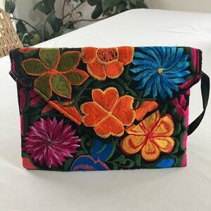 Embroidered Handmade Bohemian Convertible Crossbody Clutch Colourful Floral