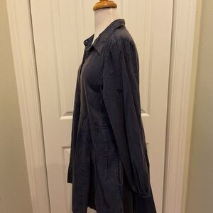 Elevate your wardrobe with this elegant navy button-down dress. Perfect for both casual and professional settings, this dress offers a blend of comfort and style.