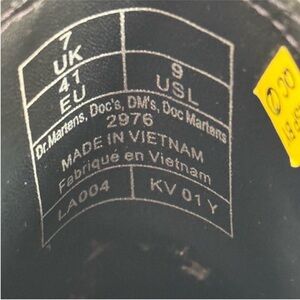 Classic DM's touches appear from heel to toe, with yellow welt stitching, a grooved sole, and a black and yellow heel loop.