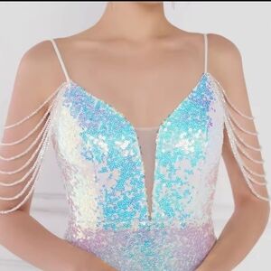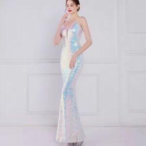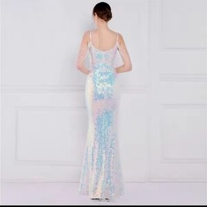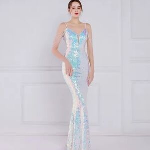 Dazzle at your next event with this glamorous sequin prom dress. Featuring stunning blue and pink hues, it's designed to make you stand out.
