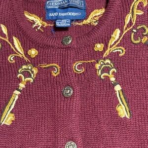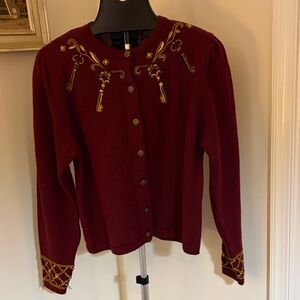 Herman Geist Hand Embroidered 100% Wool Cardigan Bronze Buttons Size:M