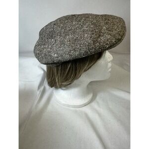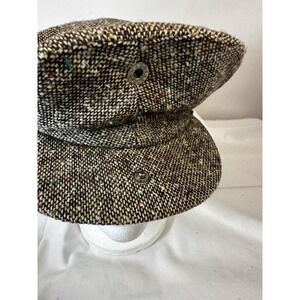 News boy hat size large with a snap on the bill so it can be closed or left open. Condition is good. There are no rips or tears or rubbed areas on the exterior fabric.