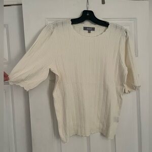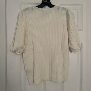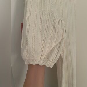 Marled by Reunited Clothing puff sleeve sweater in ivory with pointelle detail. Lightweight and soft. Size medium, true to size. Excellent condition.