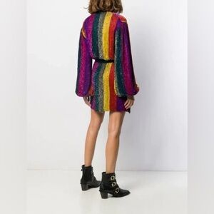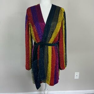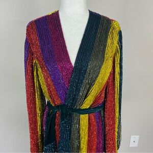 NWT RETROFETE GABRIELLE SEQUIN ROBE DRESS MULTI STRIPE SIZE SMALL