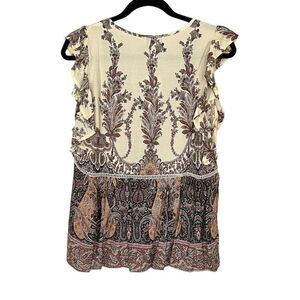 Luukse Boho Paisley Print Ruffle Hem Top - Size Medium