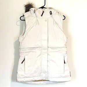 The Prana Women's Banajaara Vest is a hooded vest with big-time style points. Insulated with 650-fill down, this vest warms the core without feeling heavy or bulky. The standard fit layers nicely over any outfit and there's an internal drawcord at the waist for cinching it close to the body as needed.
