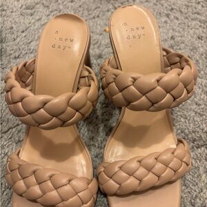 Chic double braided sandals by A New Day. Features stylish black and tan colors. Ideal for casual outings.