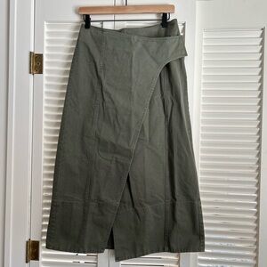 Apiece Apart Lahiri Wrap Skirt Thyme Green Cotton Midi Skirt Size 4 Straight