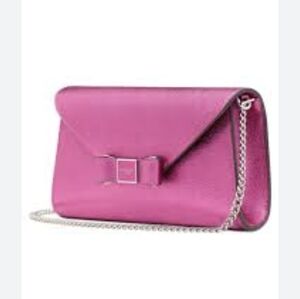 Kate Spade Metallic Pebble Envelope XBody Morgan Bow Bikini Pink NWT 24 " Chain