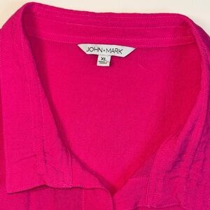 John Mark Crinkle Dolman Sleeve Blouse Button Down Top Vibrant Pink Size XL