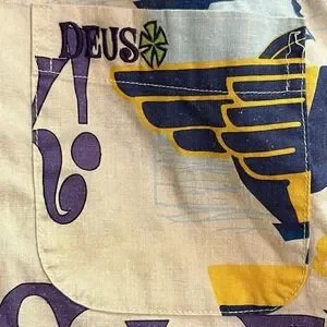 Deus Ex Machina Customs Super OK Hawaiian Shirt Riders Hemp Men's Size Small S