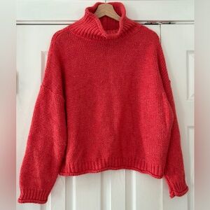 Anthropologie Vibrant Red Orange Cowl Neck Sweater Size Large EUC