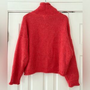 Anthropologie Lottie Red Orange Cowl Neck Sweater Size Large EUC