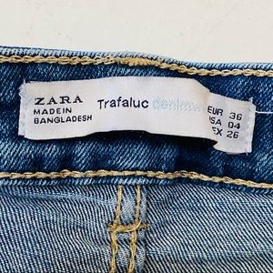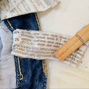 Frayed hem, front zip and metal button closure, 5 pocket jean