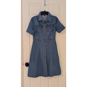 Denim Shirt Dress Womens Casual Short Sleeve Button Down Midi Dress Small NWOT