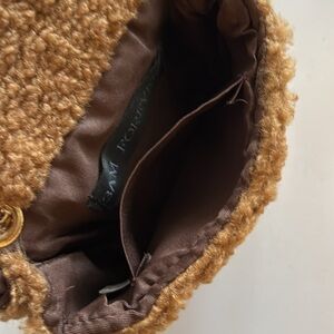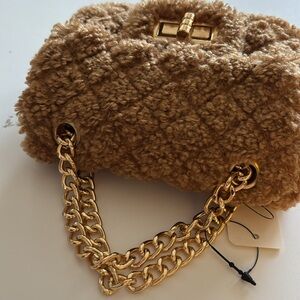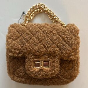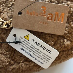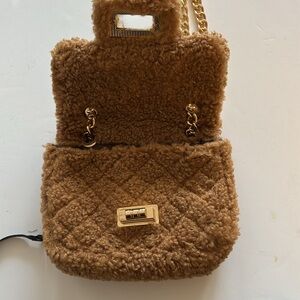 Hello 3 am fuzzy crossbody bag with chain shoulder strap 22” drop, turn lock closure gold-tone hardware, one interior card pocket.