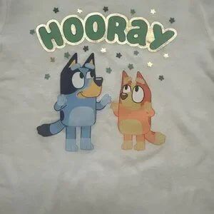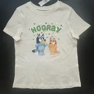 Brand New, adorable Bluey Tee, "Hooray" is outlined in gold.