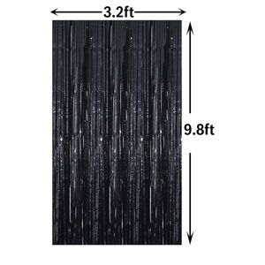 Black Tinsel Foil Fringe Curtain Backdrop Bundle of 3