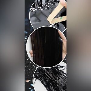 • Bundle of 3 Black Tinsel Foil Fringe Curtain Backdrop