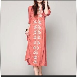 FREE PEOPLE Embroidered Fable Dress Floral Embroidered Midi