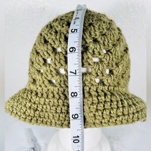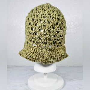 Stylish hand crafted olive green crochet bucket hat. Perfect for casual outings.