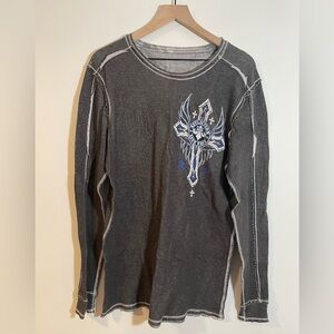 VTG Affliction Y2K Reversible Long Sleeve Gray Shirt Large Grunge Cross Wings
