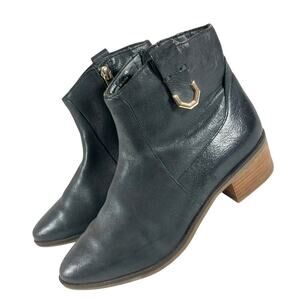 From Cole HAAN, these high end ankle boots feature black genuine leather with a pointy toe and chunky heel! Adorable! Gold metal side tab, 2" heel, Size 6B! Excellent! Superb EUC Condition! **ABSOLUTELY GUARANTEED CONDITION: EUC MINTY-EXCELLENT TO LIKE-NEW, by Lily @HauteClub!***