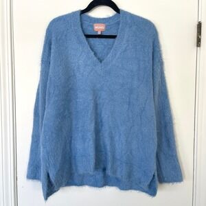 Show Me Your Mumu Cozy Forever Sweater Light Blue Fuzzy V Neck Size Small