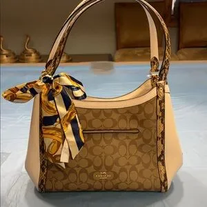 Coach Tan and Cream Signature Shoulder Bag With Purse Scarf