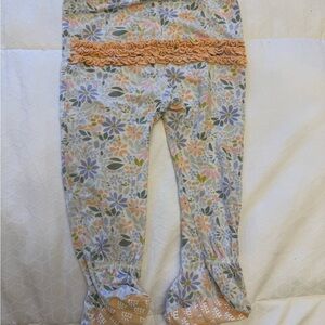 This charming kids' long sleeve pajama set features a delightful floral pattern with a playful ruffle collar. The soft orange accents add a touch of warmth to the design, making it perfect for any occasion.