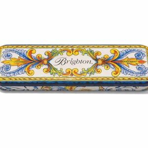 The Brighton Tin Jewelry Boxes are a set of four empty boxes designed for organizing necklaces, bracelets, and earrings. The multicolor metal boxes are suitable for women who want to keep their jewelry neatly organized. With a vintage yet modern twist, these Brighton jewelry boxes are a stylish way to store and display your favorite pieces. Each box is not personalized or customized, making them a versatile option for any jewelry collection.